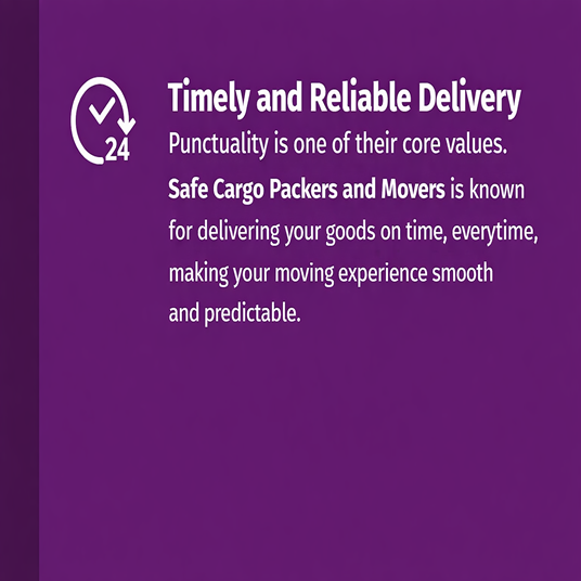 Punctuality is a core value at Safe Cargo Movers and Packers the company understands the importance of time is both residential and commercial relocations, ensuring timely arrivals and prompt deliveries. Our unwavering commitment to schedules minimizes disruption and allows clients to settle into their place quickly and efficinetly expectations every time.
